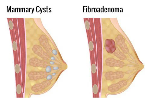 One of the most common breast conditions is cysts. Most cysts contain calcified calcium, chlorine, environmental pesticides, heavy metals and even plastic. Stress can cause excess calcium to be released into the blood, which can then precipitate out of the blood and into tissues without the co-factors needed for absorption into muscles and bones. Most cysts, especially if they are painful, or grow and recede with hormonal fluctuations, are benign.